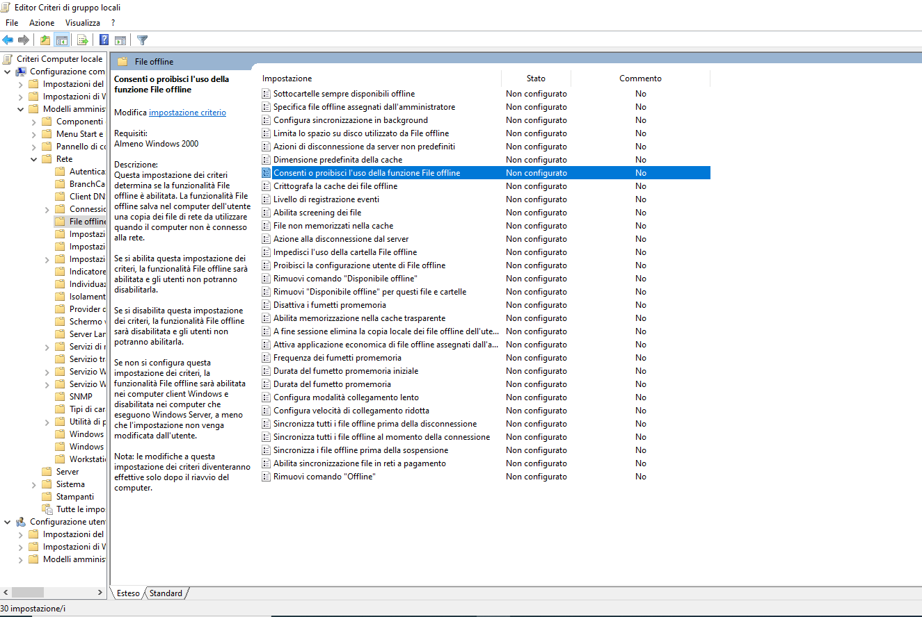 File offline è una funzione del Centro sincronizzazione di Windows che consente di archiviare localmente una copia dei file di rete. In questo modo è possibile accedere ai file anche se non si dispone di una connessione a Internet in ufficio o a casa, ad esempio quando il server è offline o infetto da un ransomware, ecc. I file vengono sincronizzati automaticamente alla successiva connessione alla rete.
