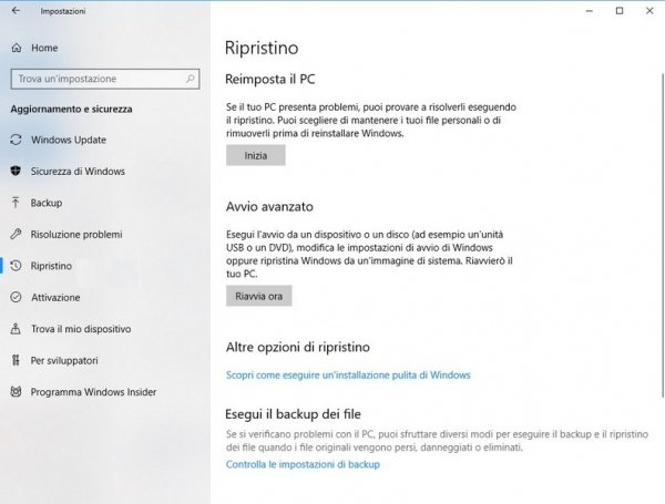 Passo 2: Vai su Impostazioni > Aggiornamento e sicurezza e clicca su Ripristino nel menu a sinistra. Nella sezione Avvio avanzato, scorri verso il basso e clicca su Riavvia ora.