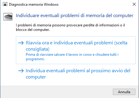 Correzione 2. Esegui lo Strumento di Diagnostica della Memoria