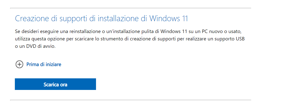 Per reinstallare o installare Windows 11 su un PC nuovo o usato, puoi scaricare lo strumento Creazione di supporti di installazione, si chiama anche Media Creation Tool, di Windows 11 per creare un USB o un DVD avviabile.