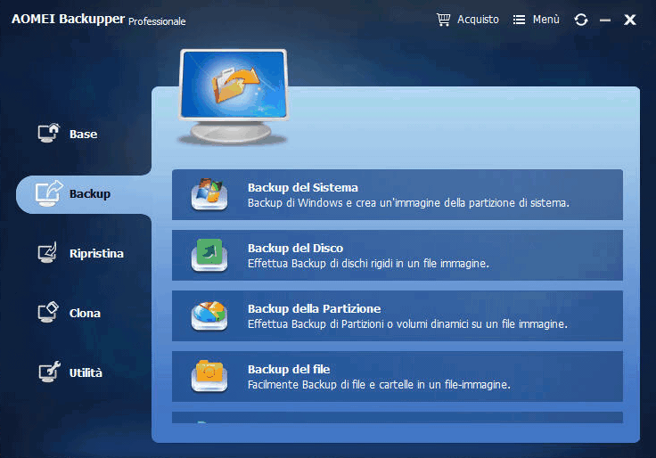 In questi tre metodi, si dovrebbe essere in grado di completare un backup senza ottenere il backup di Windows bloccato a 57. Tuttavia, il backup di Windows 7 è lento e è ingombrante fare tali passaggi per poter eseguire un backup, soprattutto per backup pianificazione. Se stai cercando un modo migliore per eseguire il backup, qui venire AOMEI Backupper Standard.