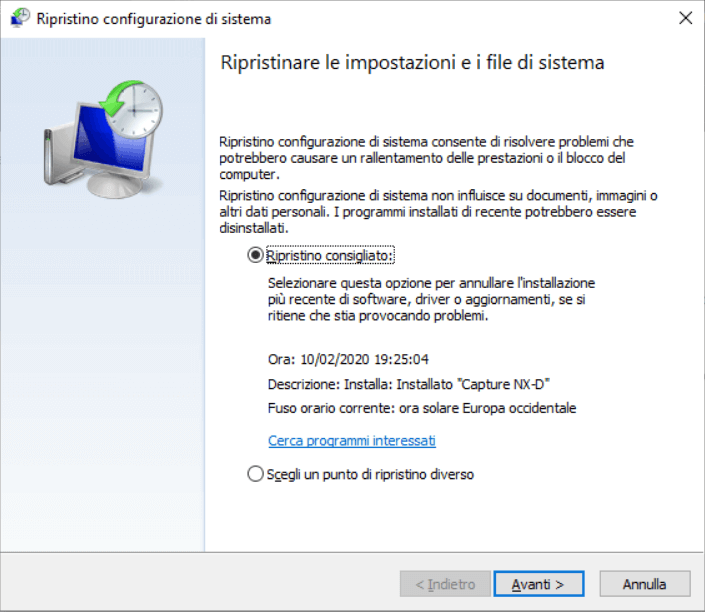 Eseguire Ripristino Configurazione di Sistema per Windows 7