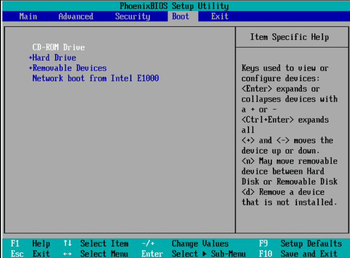 2. Collega il supporto di avvio al computer da ripristinare. Avvia il computer e premi un tasto specifico (di solito Del o F2) per avviare il BIOS. Cambia il supporto di avvio come prima opzione di avvio nel menu Boot. Poi verrà avviato direttamente nell'interfaccia intuitiva di AOMEI Backupper.