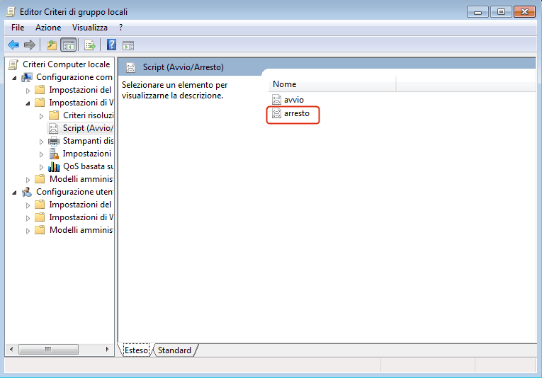 2. Nella finestra a comparsa, accedere a Configurazione computer> Impostazioni di Windows> Script (Avvio/Arresto).