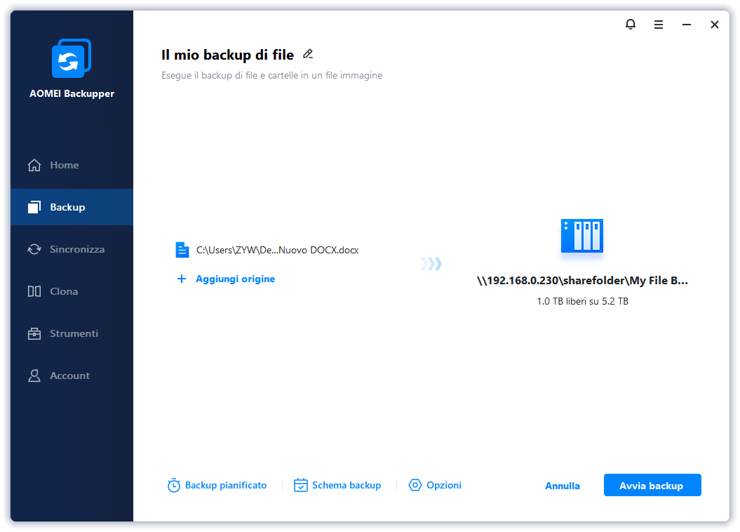 ☛ Metodo 3. Backup a NAS con AOMEI Backupper (consigliato)