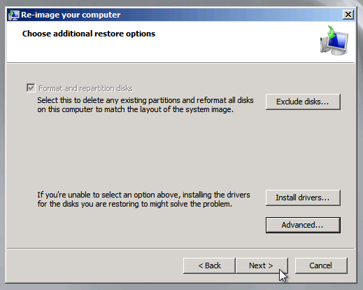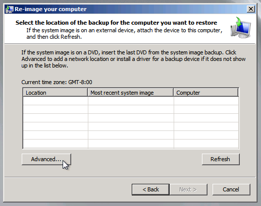 2. Seguire le istruzioni e selezionare “Restore your computer using a system image that you created earlier”.