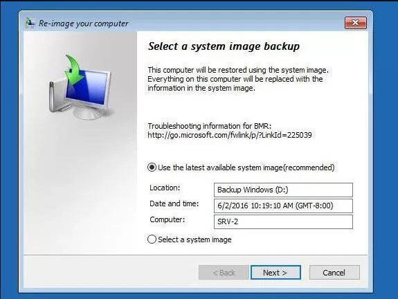 Supponiamo di aver creato un backup dell'immagine di sistema. Vediamo come riparare Windows Server 2008/2012 con un disco di ripristino.