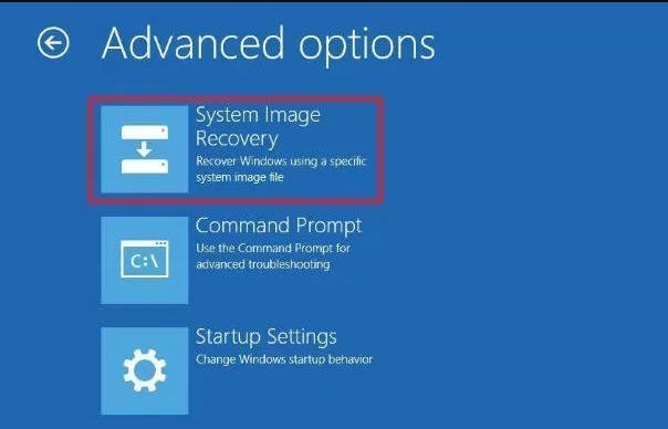 Fai clic sul pulsante Risoluzione dei problemi, quindi seleziona System Image Recovery nelle opzioni avanzate
