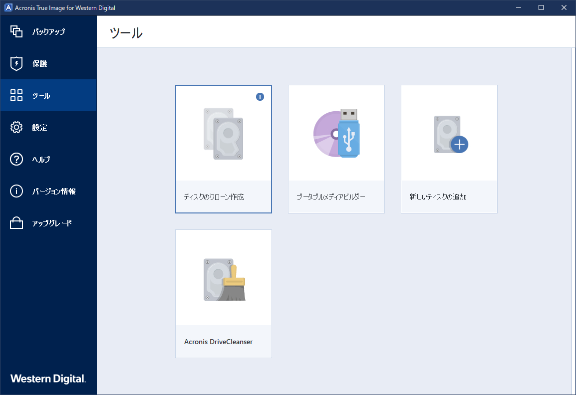 ただし、Acronis True Image 2018以降、起動可能なメディアなしで直接クローンを作成できます。このプログラムは、ディスククローンに加えて、ディスクバックアップ、パーティションバックアップ、ディスク復元などの機能も備えています。