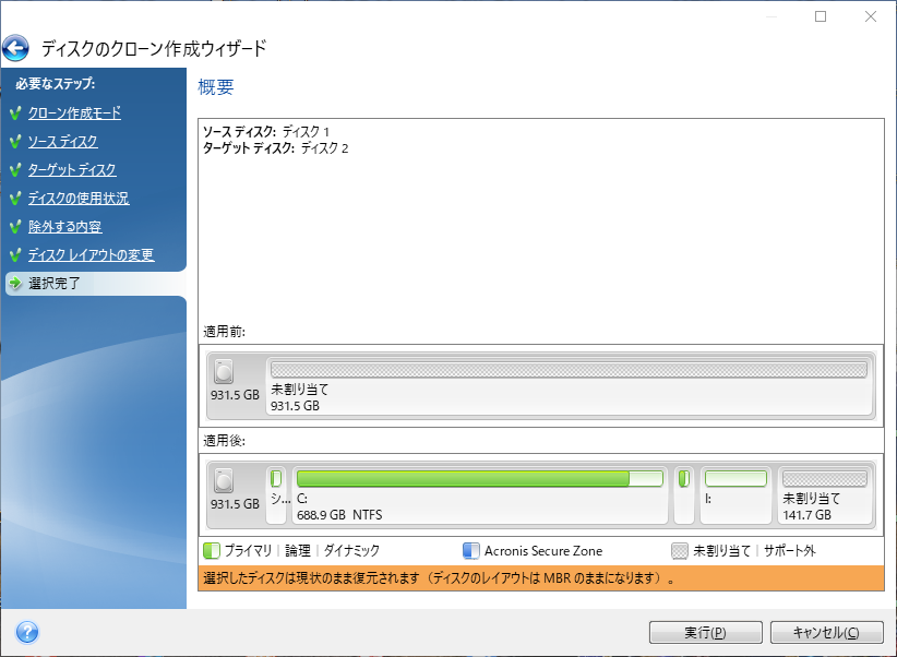 Acronis True Image:SSDへのクローン