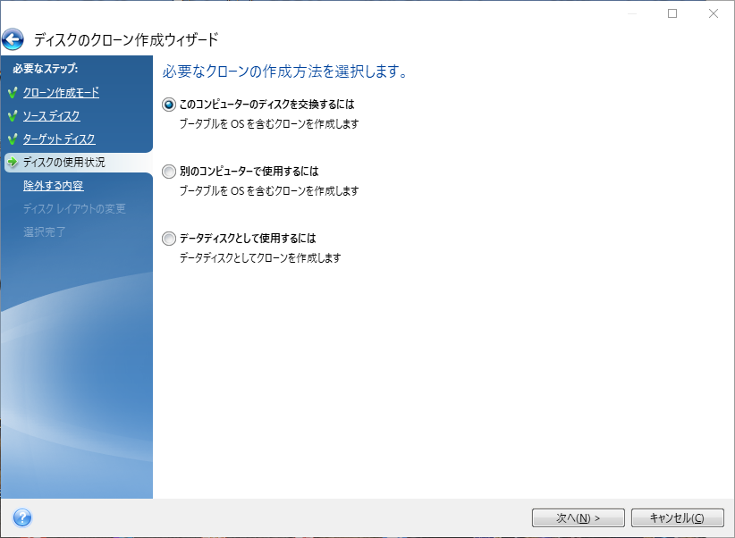 手順 5. ニーズに応じてクローンの作成方法を選択します。今回はHDDをアップグレードしたいだけなので、「このコンピューターのディスクを交換するには」を選択しました。
