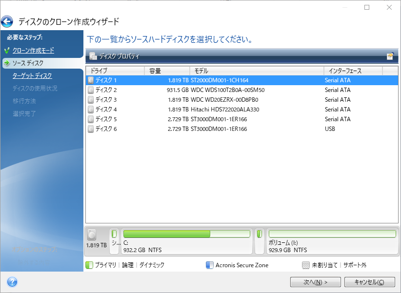 手順 3. ソースHDDを選択します。次に、「次へ」をクリックします。