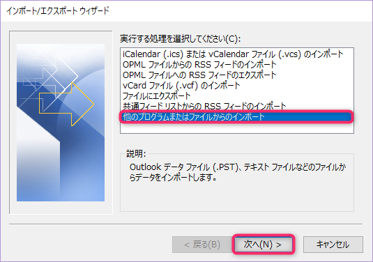 インポート/エクスポートウィザードを使用してOutlookを復元するには、次の手順に従います。