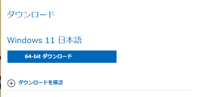 3. 「64-bit ダウンロード」をクリックし、Microsoft社のウェブサイトからWindows 11のISOファイル64ビットをダウンロードします。