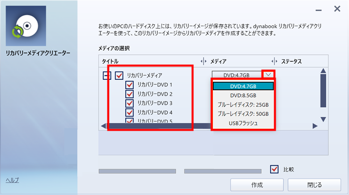 東芝リカバリメディアクリエーターを使ってリカバリーメディアを作成するプロセスは簡単です。リカバリーメディアを作成したいデバイスを東芝のデバイスに接続し、次の手順に従ってください。