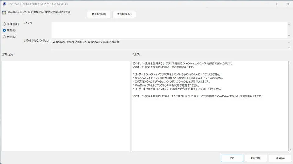 ☛ コンピュータの構成→管理用テンプレート→Windowsコンポーネント→OneDrive
