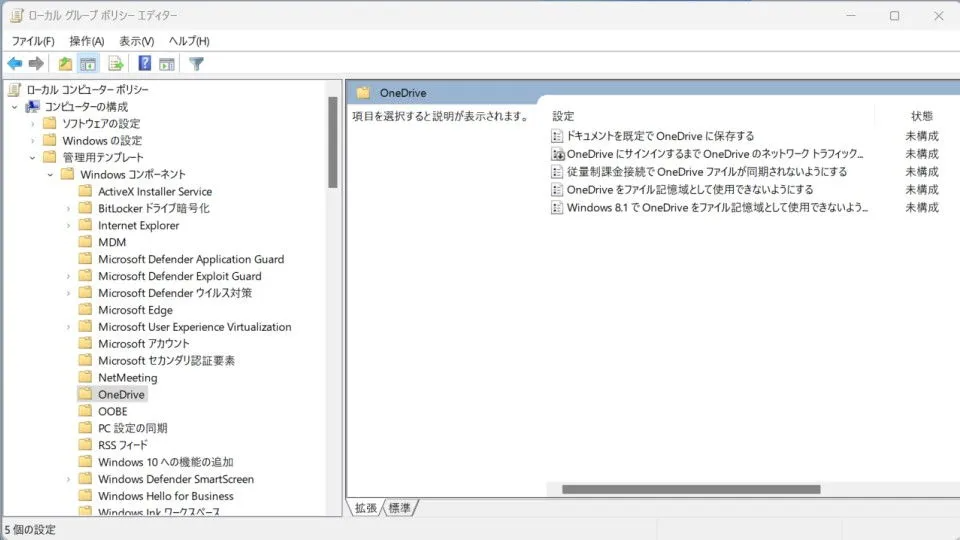 3. ローカルグループポリシーエディターでOneDriveを無効にする