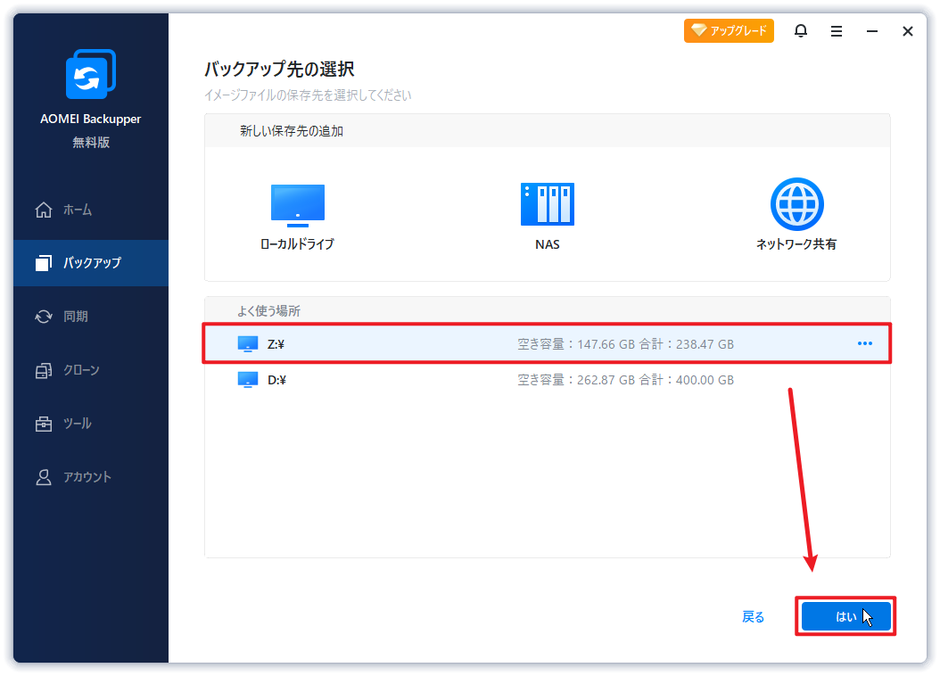 ステップ 3. そしてターゲットパス(バックアップ先、保存先)を指定します。USBメモリのデータを内蔵ハードディスクにバックアップするのはほとんどの場合です。
