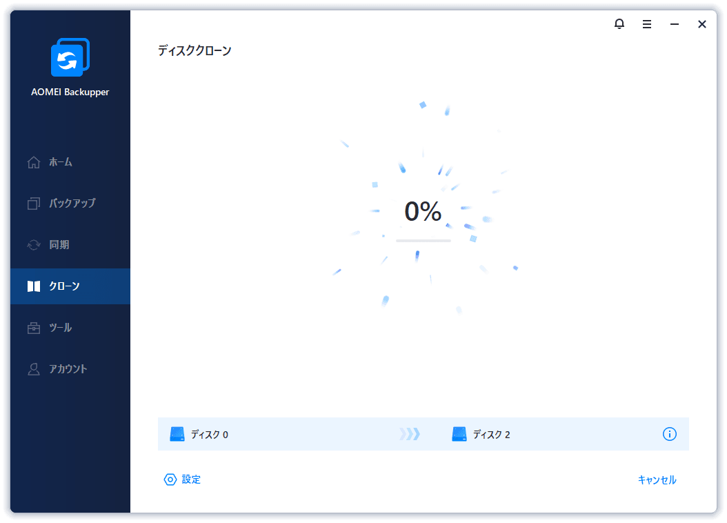 ニーズに応じて下の3つのオプションで、クローンをカスタマイズすることができます。すべての設定を確認し、問題がなければ「開始」をクリックします。