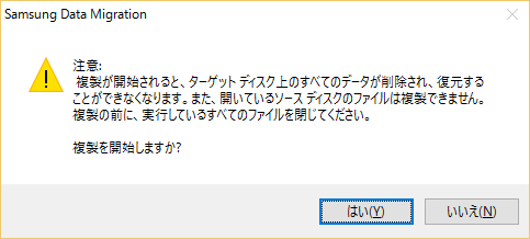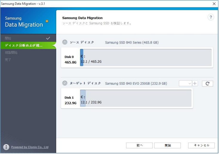ただし、Samsung Data Migrationを使用していつもHDDをSSDに正常にクローンできるわけではありません。複製に失敗しました。400180[061b34]というエラーメッセージが表示されることがあります。またはSamsung Data Migrationは、「ターゲットディスクが切断された」ことで失敗した時もあります。