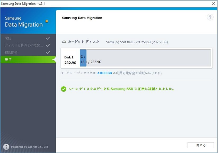 Samsung SSD 850EVOをSDM経由でSSDにクローン