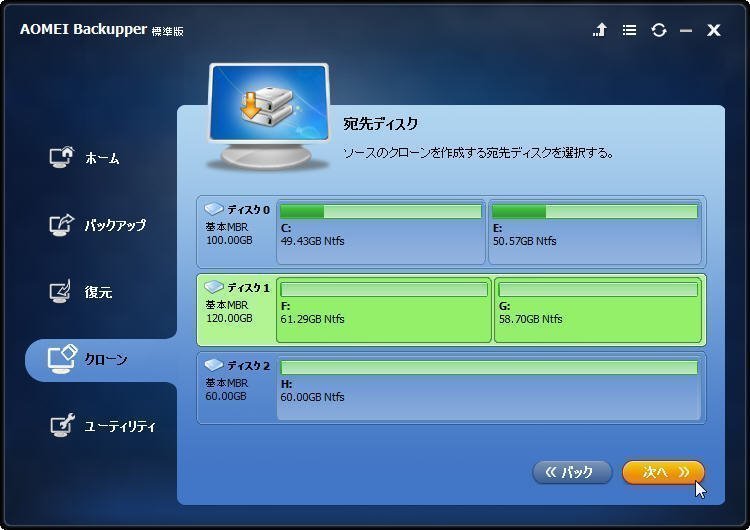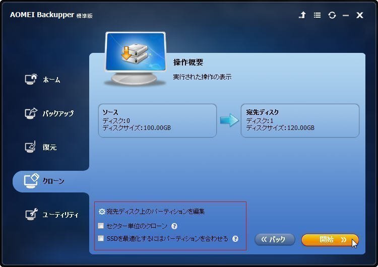 強力なKingston SSDクローンフリーソフトAOMEI Backupper Standard(完全無料)は、「ディスククローン」機能を備えます。数回のクリックだけでHDDからSSDへ中身を丸まんま移行することができます。HDDに入っているデータも全てクローンすることができます。クローン作成中にKingston SSDを最適化することもできます。