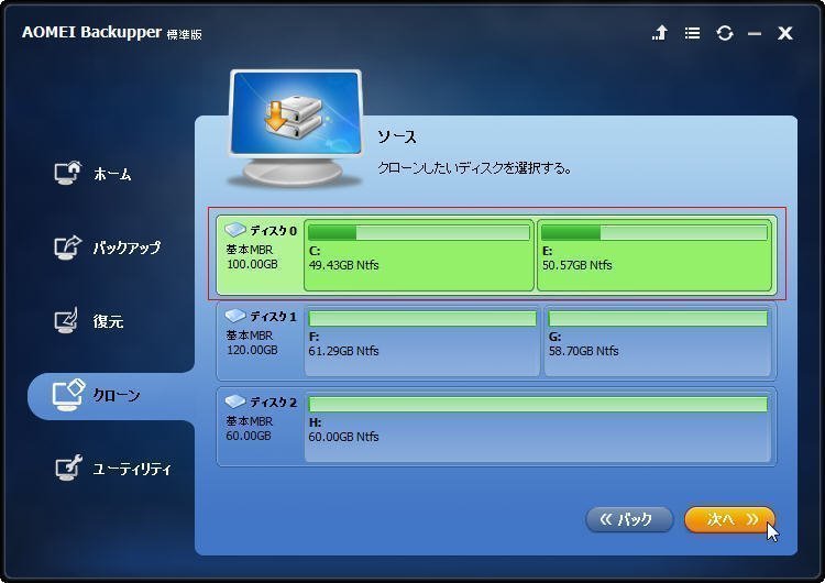 ステップ 2. 古いHDDをソースドライブ(クローン元)として選択します。