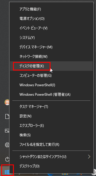 ❶「Windows」アイコンを右クリックし、「ディスクの管理」を選択します。そしてCドライブを右クリックし、「ボリュームの縮小」を選択します。