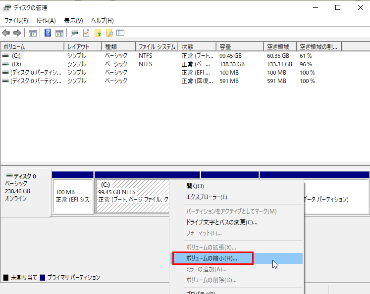 ステップ 1. 通常、HDDはSSDより大きいので、小さいSSDに合うためにCドライブの領域を縮小してください。