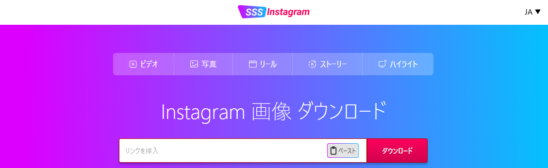 sssInstagramも、Instagramの動画をダウンロードするための人気オンラインツールの1つです。高画質のまま動画を保存できる点が特徴で、シンプルな操作で利用できます。