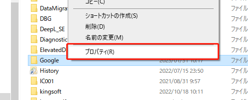 ステップ 3. 「Google」フォルダを右クリックし、「プロパティ」オプションを選択します。