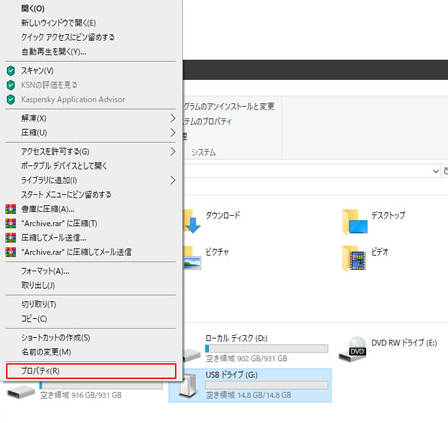ステップ 1. 「Win」+「E」キーを押して「エクスプローラー」を開きます。SDカードを右クリックし、「プロパティ」を選択します。