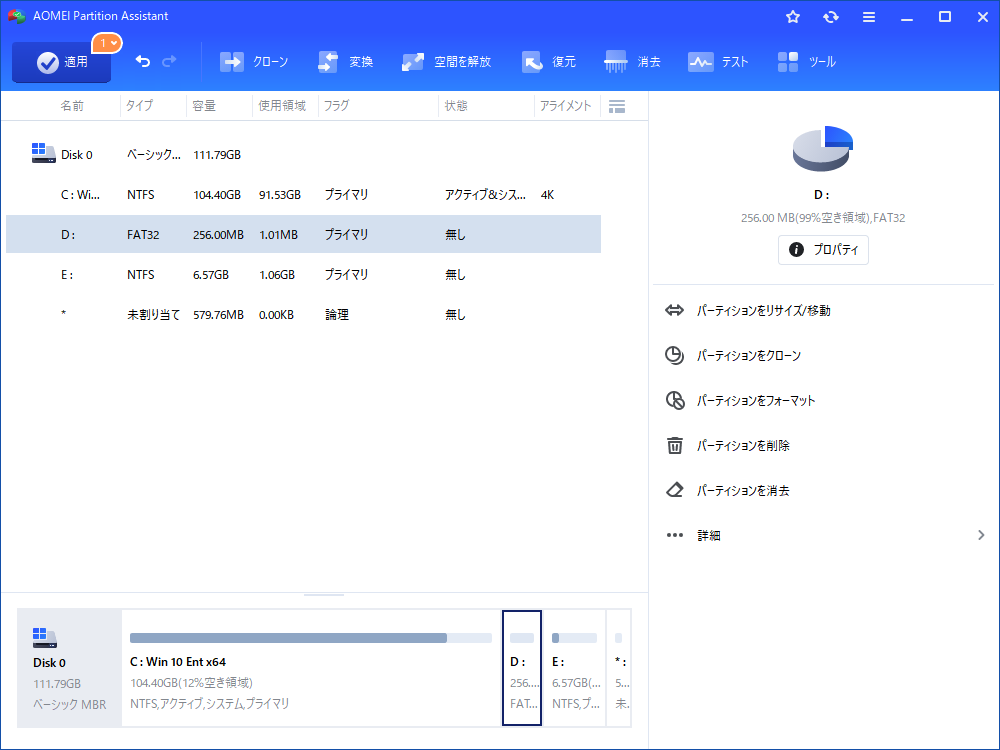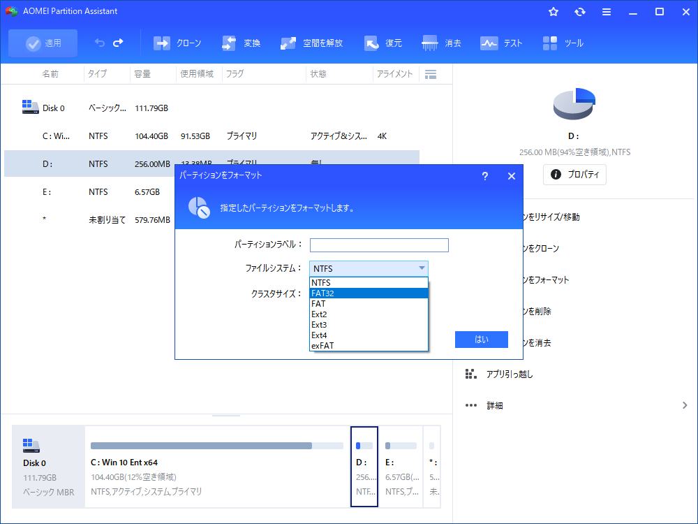 ディスクのファイルシステムが破損している場合や不良セクタがある場合は、ディスクの管理を使用するとフォーマットが失敗する可能性があります。この場合に、AOMEI Partition Assistantを使用することをおすすめします。次に、その方法をご案内します。