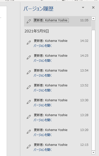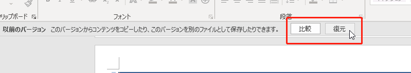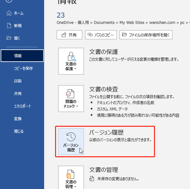 方法2:Wordの「バージョン履歴」機能を使用して復元する