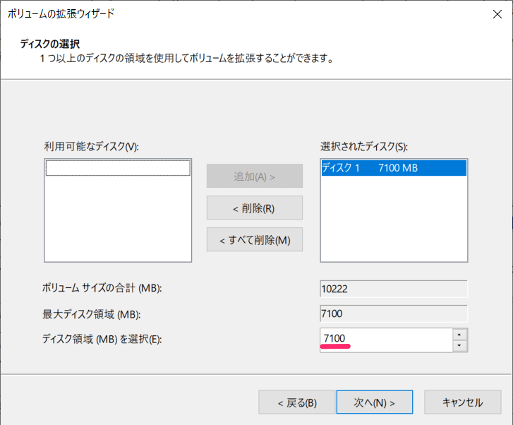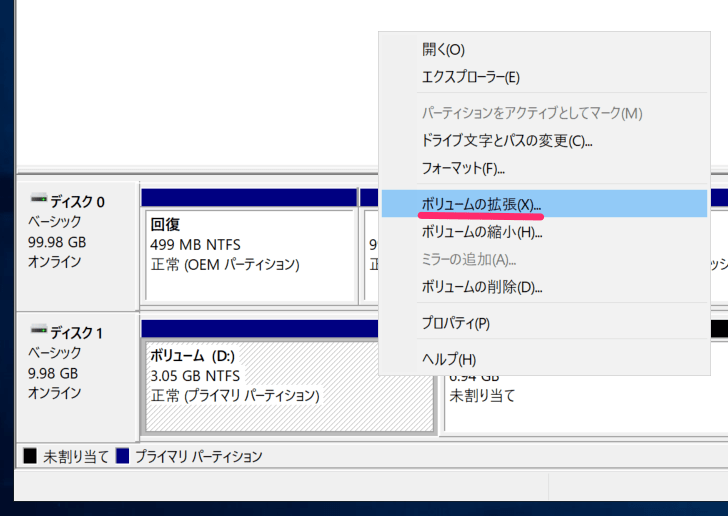 また、複数のパーティションがあり、未割り当て領域を既存のパーティションに統合したい場合、次の手順に従ってください。