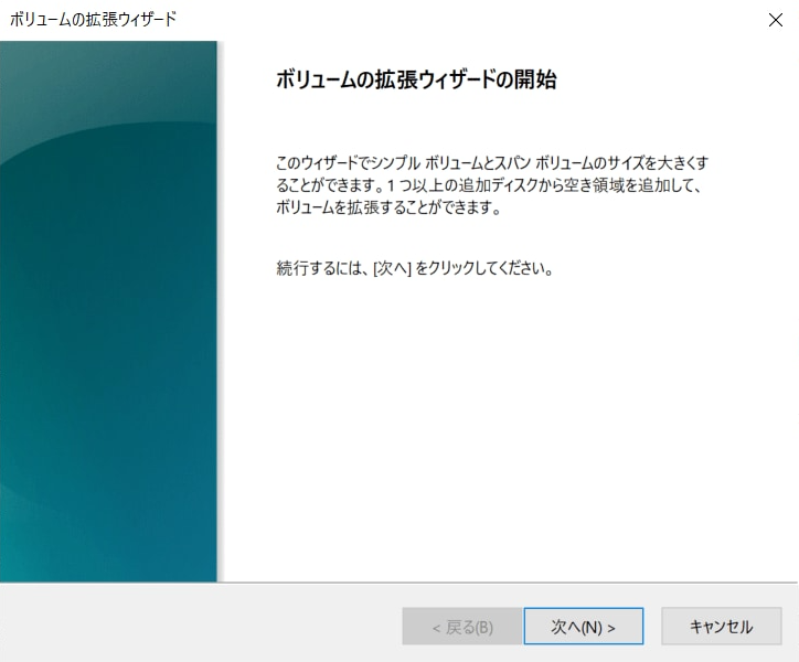 ステップ 2. 「ボリュームの拡張ウィザード」が開くので、「次へ」をクリックします。