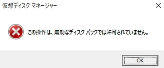 この操作は、無効なディスクパックでは許可されていません。