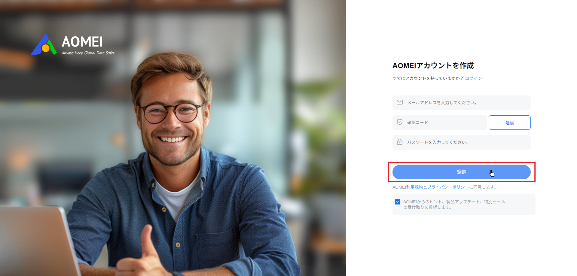 AOMEIユーザーセンター/AOMEI Cloudにログインする方法