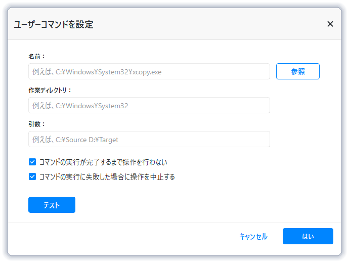 1. 作業を実行する前、まず下記のプログラムを実行(事前コマンド):バックアップまたは同期の前に指定したプログラムまたはスクリプトを実行します。