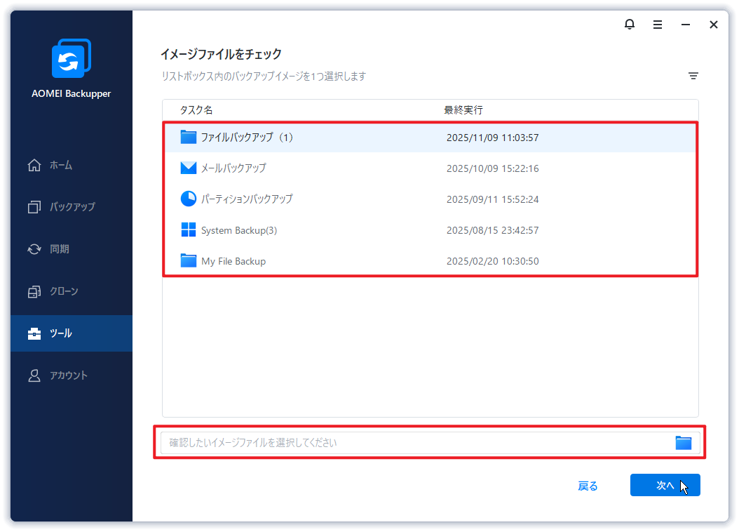 AOMEI Backupperでバックアップイメージをチェックする方法