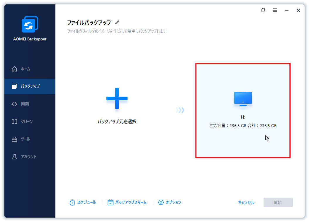 ステップ2:ファイル/フォルダをバックアップ元として追加する