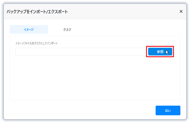 バックアップタスクを復元するために、イメージファイル(.adi、.afi)をインポートします(バックアップタスクのみ復元可能)。