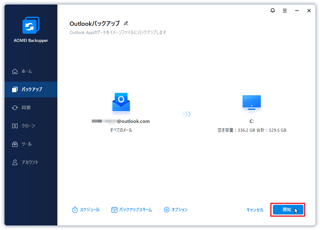 AOMEI BackupperでOutlookのメールをバックアップする方法
