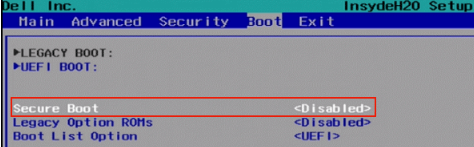 2. BIOSに入ったら、「→」で「Boot」を選択します。「↓」で「Secure Boot」を「Disabled」に設定し「Enter」キーを押します。