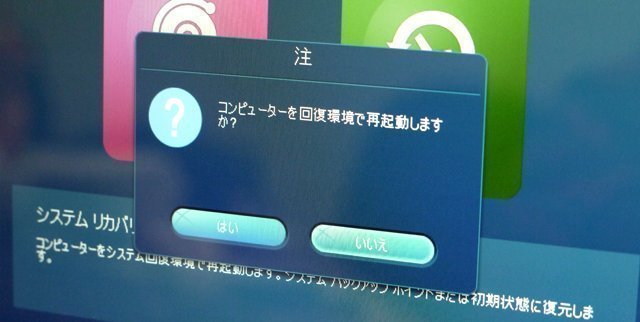 ステップ 2. そして「システムリカバリ」→「はい」を選択して回復環境でパソコンを再起動します。