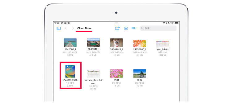 手順 4. iPadで「ファイル」アプリ→「iCloud Drive」をタップし、転送できた動画を確認します。