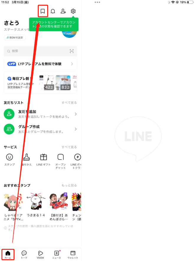 手順 3. iPadでLINEを開き、下の「ホーム」→上の「Keep」アイコンをタップし、動画を確認します。