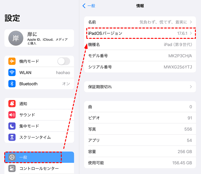 iPadのOSバージョンを確認するには:「設定」アプリを開き、「一般」>「情報」の順にタップして、iPadOSバージョンを確認できます