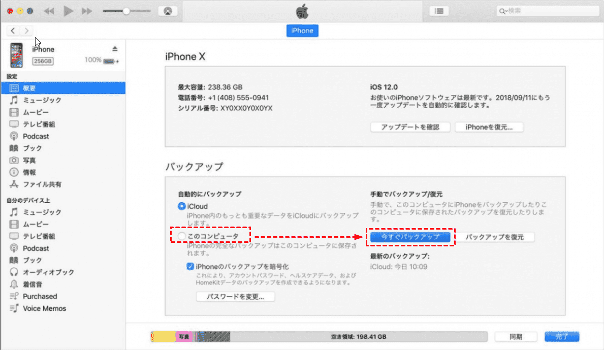 iTunesバックアップでiPhoneの音楽をPCに取り込む手順は以下になります。