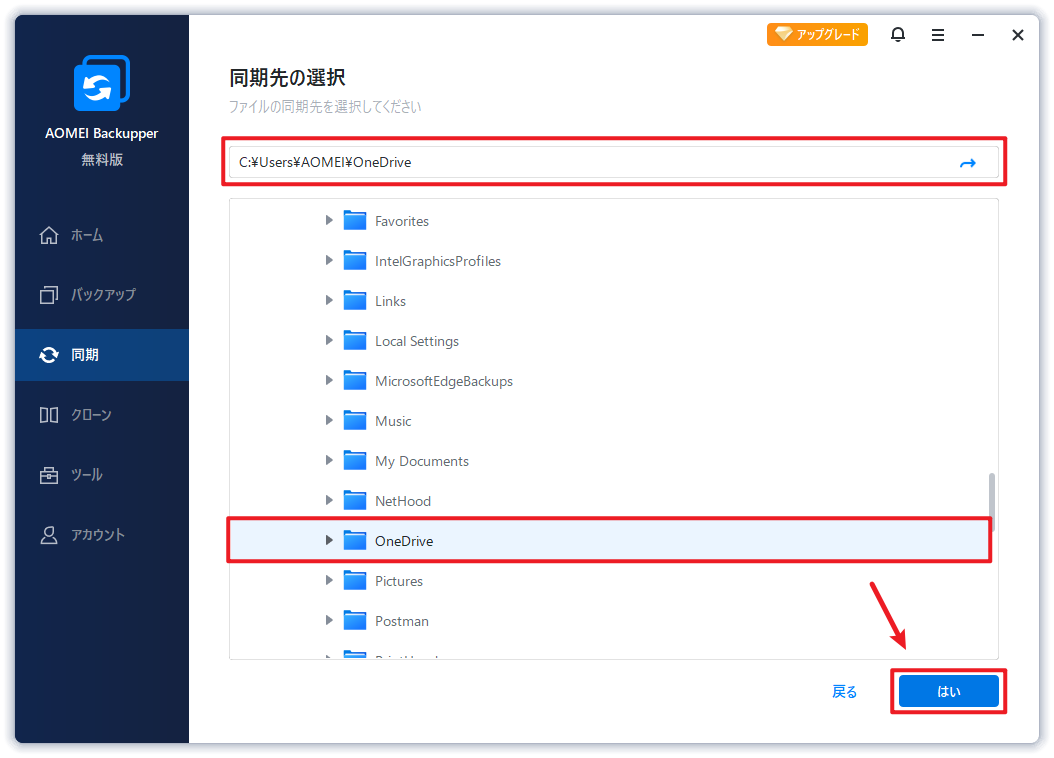 ステップ 4. 次に、OneDriveを選択して「はい」をクリックします。